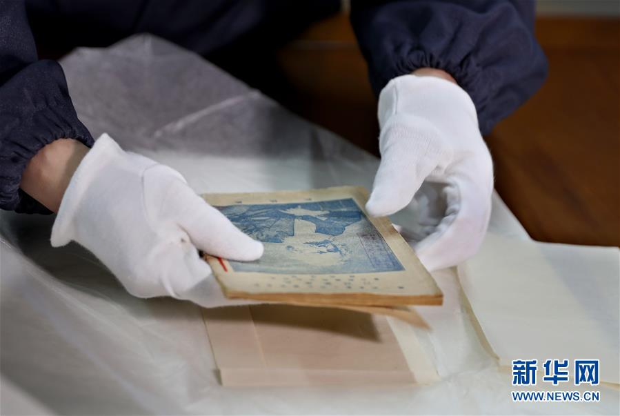 6月23日,中共一大会址纪念馆藏品保管部的工作人员展示张人亚和他的亲属保护的《共产党宣言》中文全译本。新华社记者 刘颖 摄